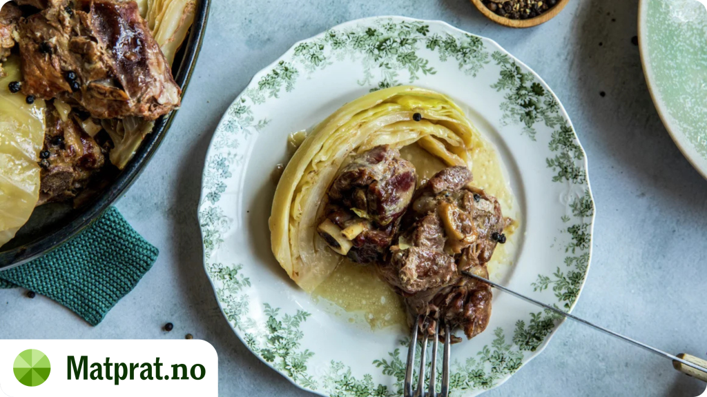 If you felt that this went well and you’re still not full, you can try making Norway’s national dish—fårikål! It consists of mutton, cabbage, potatoes, salt, and pepper. You can also add a bit of flour if you want a thicker sauce. The word et får means the same as en sau (sheep), so the dish’s name is actually very self-explanatory (sheep in cabbage).😊 It has very few ingredients, but it is a very popular and warming dish during the autumn months of October and November:
